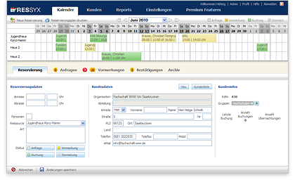 So sieht der Reservierungskalender aus. Er ist die zentrale in Ihrer Reservierungsverwaltung. Hier haben Sie Zugriff auf viele Funktionen und können Anfragen, Vormerkungen, Bestätigungen, schon verschickte Benachrichtigungen und vieles mehr einsehen.